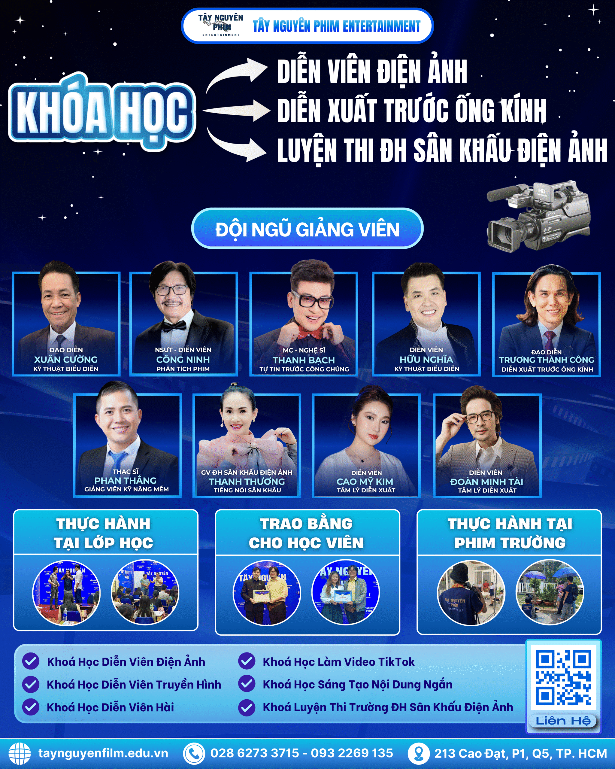 👉 Nếu bạn muốn học bài bản và thực hành thực tế, hãy đăng ký ngay khóa học tại Tây Nguyên Phim Entertainment. Tại đây, bạn sẽ được đào tạo chuyên sâu, thực hành quay dựng và được hướng dẫn chi tiết từng kỹ năng. Đây chính là môi trường lý tưởng giúp bạn tự tin phát triển và tỏa sáng trước camera.
